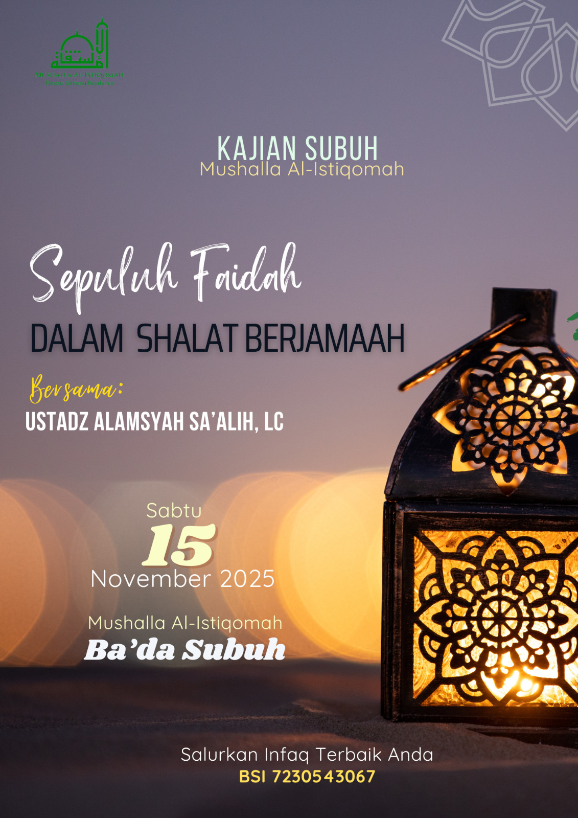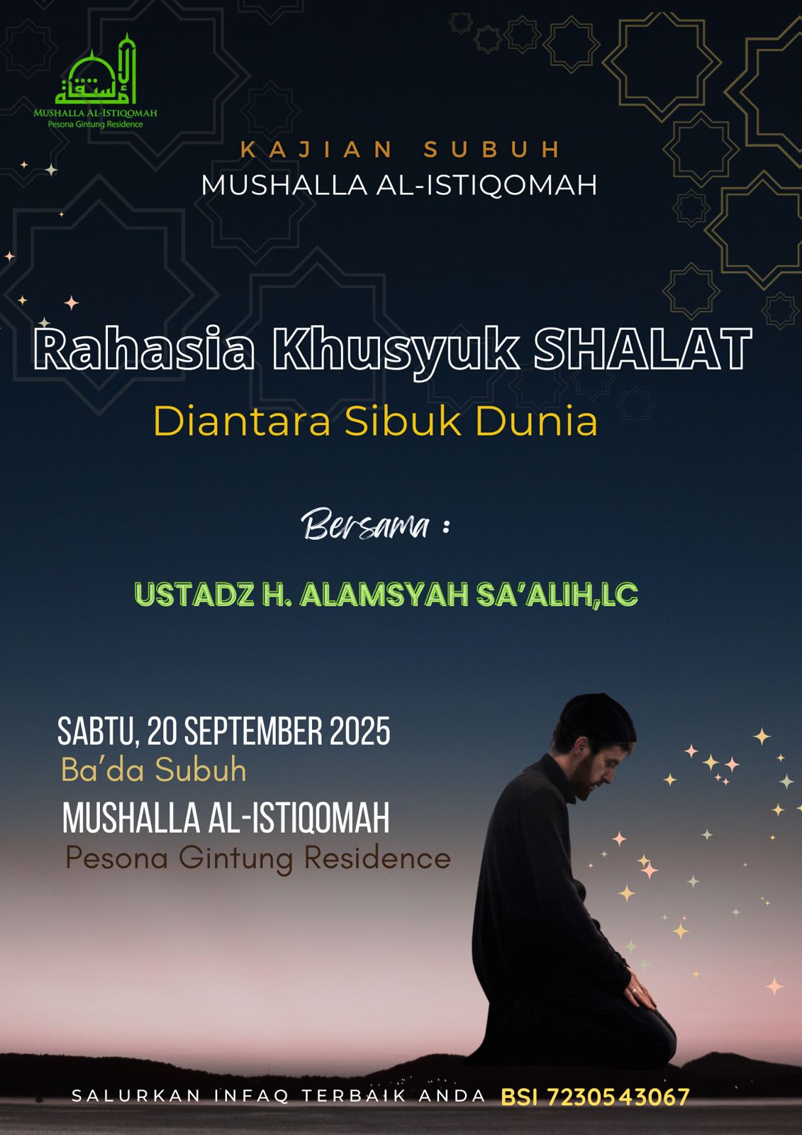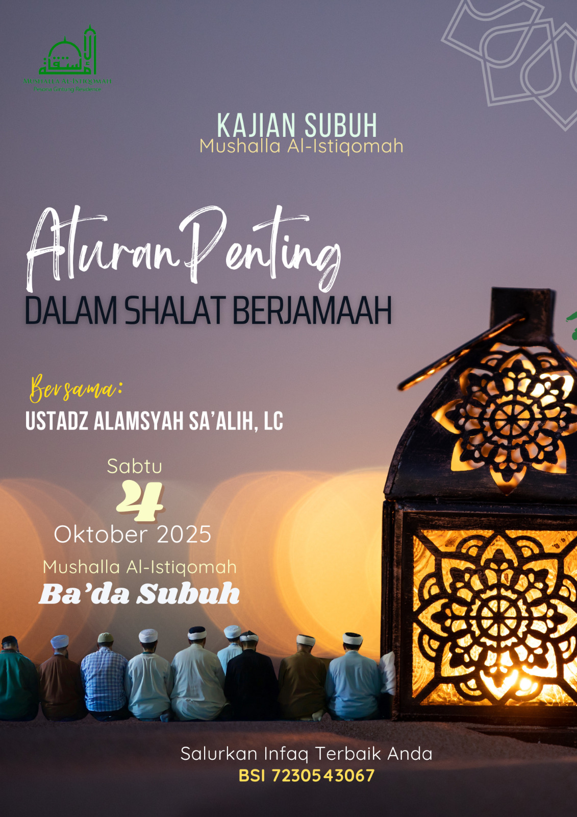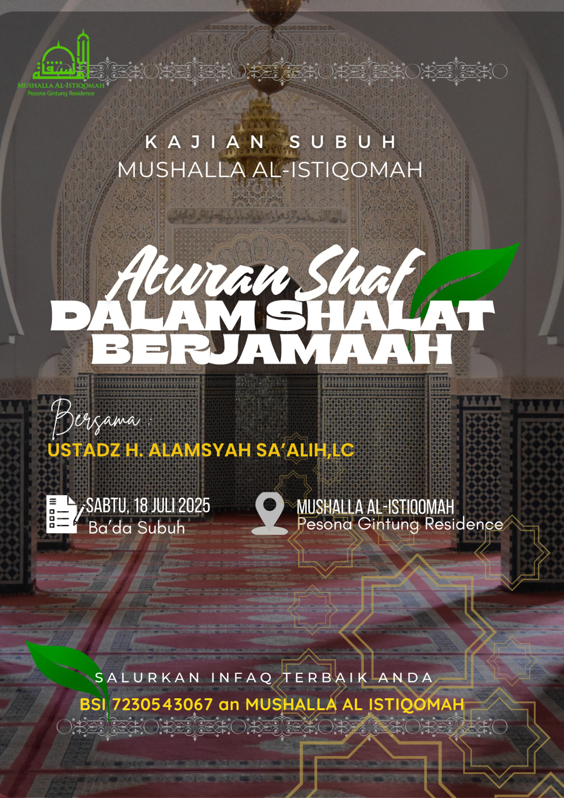 Jadwal dan informasi kegiatan di Mushalla Al -Istiqomah